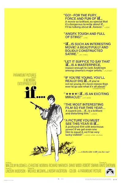 فیلم If.... که در سال 1968 به کارگردانی لیندسی اندرسون و با فیلمنامه دیوید شیرون ساخته شده، داستان سه دانشآموز غیرمتعارف به نامهای مالکوم مکداول، ریچارد وارویک و دیوید وود را روایت میکند که نقشه انتقام میکشند. این اثر به صورت مجموعهای از تابلوها که با کارتهای عنوان جدا شدهاند، قسمت اول خود را به نمایش قوانین سختی که این پسران در مدرسه عمومی نخبه خود تحت آنها زندگی میکنند و مجازاتهای دلخواهی که توسط دانشآموزان بزرگتر، به رهبری روونتری (روبرت سوآن) و مقامات مدرسه اعمال میشود، اختصاص میدهد. این روایت در محیطی پر از آیینهای عجیب، سرودهای لاتین و اصطلاحات نامفهوم انگلیسی مدرسههای عمومی شکل میگیرد و البته بدون کنایههایی درباره همجنسگرایی، داستان کلاسیک زندگی در مدارس عمومی بریتانیا ناقص خواهد بود. در نیمه دوم If....، داستان به تنهایی سورئالیستیتر میشود و ما به سوالاتی درباره واقعیت و خیال میرسیم. پسران و دختری از شهر به سلاح دست پیدا میکنند و در نهایت یک کشتار را رقم میزنند.