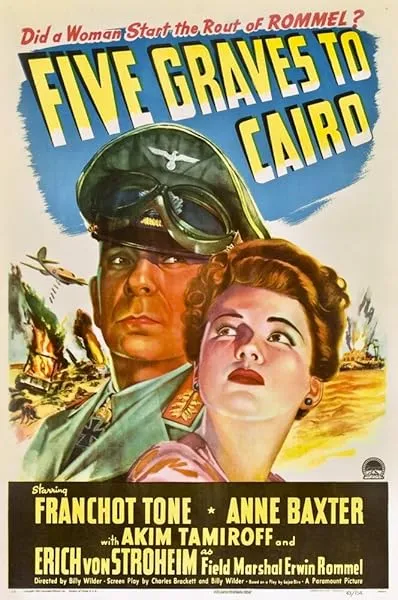 فیلم «پنج قبر در قاهره» به کارگردانی بیلی وایلدر و با همکاری چارلز براکت در نوشتن فیلمنامه، بر اساس نمایشنامه «هتل امپریال» اثر لایوش بیرو ساخته شده است. بازیگران اصلی شامل فرانچوت تون، آن باکستر، آکی Tamiroff، اریش فن استروهایم و پیتر ون آیک هستند. موسیقی این فیلم اثر میکلوش روزا و فیلمبرداری آن توسط جان سیتز انجام شده است.